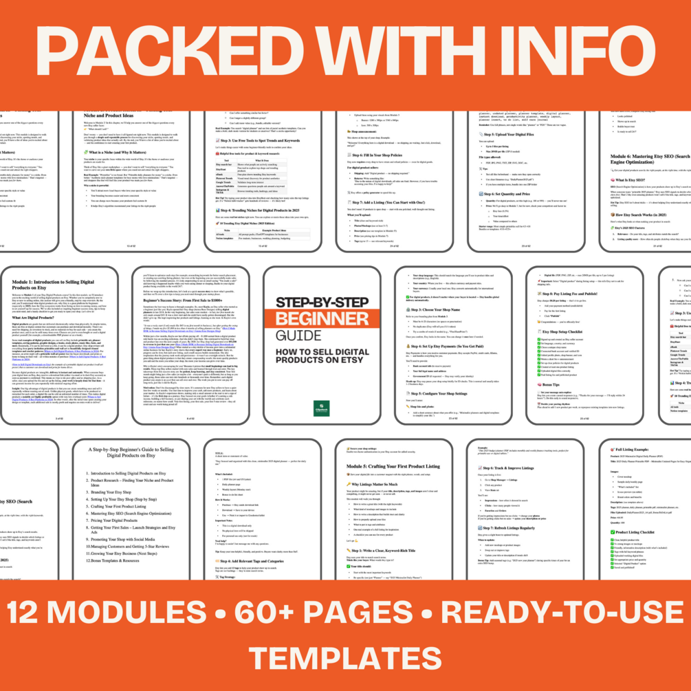 Step-by-step Etsy course with templates, checklists & a content planner โ perfect for beginners